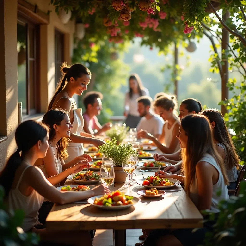 Servimos comidas vegetarianas y veganas preparadas con ingredientes frescos y de temporada, en su mayoría producidos localmente. Nos aseguramos de que los menús sean nutritivos y deliciosos, adaptados a las necesidades dietéticas de nuestros huéspedes.